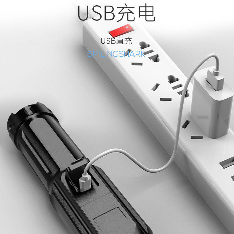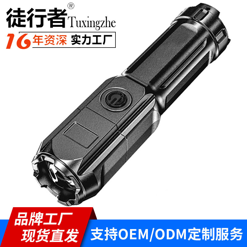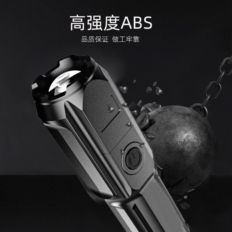 Cross-border new ABS strong light zoom flashlight outdoor home multifunctional portable household lighting small flashlight