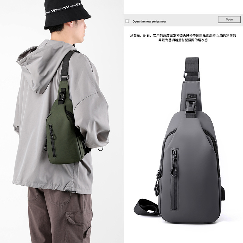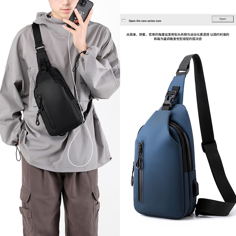 Cross-border New Chest Bag Men's High-end Messenger Bag Men's Water-repellent Shoulder Bag USB Charging Chest Bag