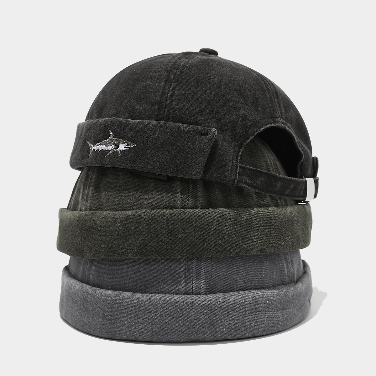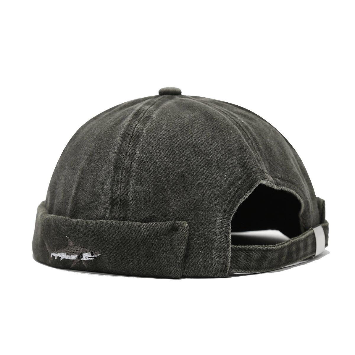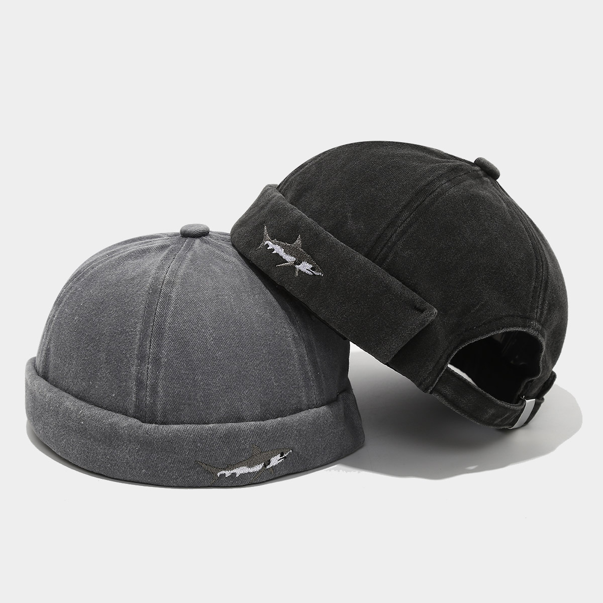 Cross-border New Embroidered Shark Beanie Do Old Washed Fashionable Men's Personalized Master Hat Women's Sunshade Melon Hat