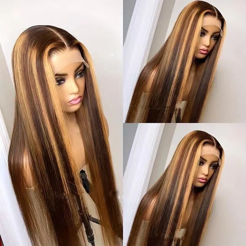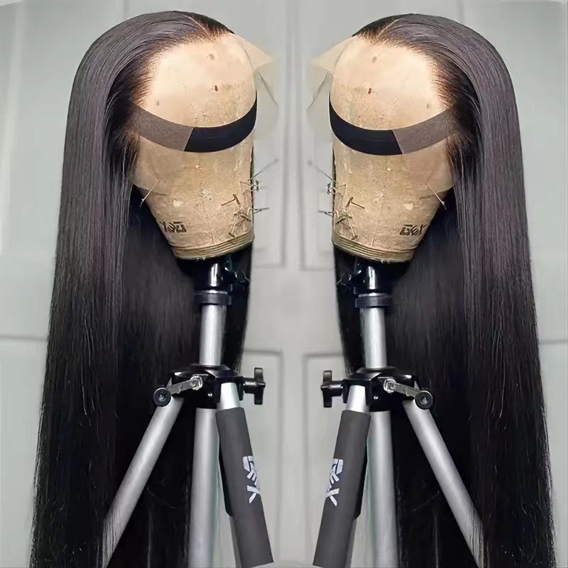 Cross-Border New Fashion Women's Middle-Parted Long Straight Hair Lace Front Wig Synthetic Fiber Full Headpiece Natural Long Straight Hair
