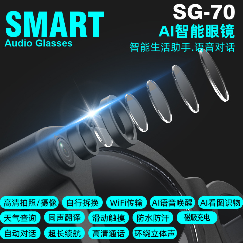 Cross-Border New Product Ai Bluetooth Glasses with High-Definition Calls, Music, Photo Taking, Image Recognition, Translation, and Photography Smart Glasses