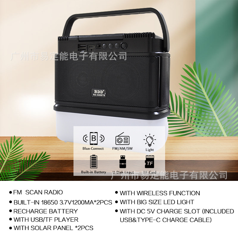 Cross-Border New Rd-328Bts Dual Solar Charging Satchel Bluetooth Speaker Outdoor Led Lighting Radio
