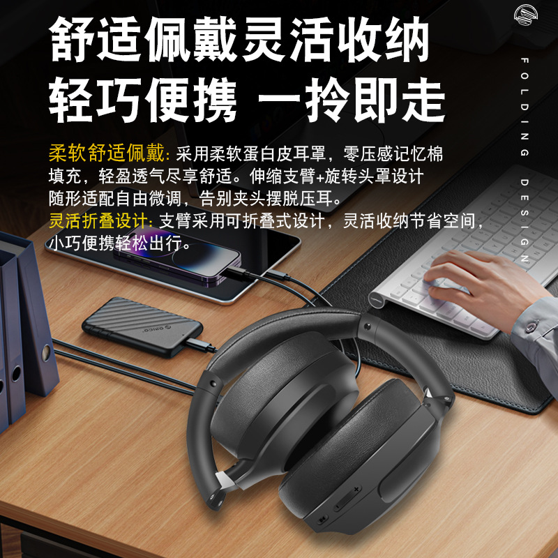 Cross-Border New Wireless Bluetooth Headset with Active Noise Reduction (Anc), Over-Ear, Long Battery Life, Foldable and Storage-Friendly Gaming Headset
