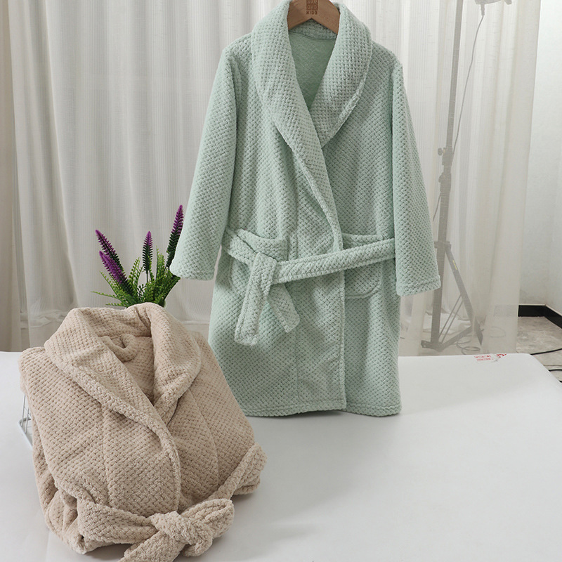 Cross-border Nightgown Women's Thickened Flannel Lengthen Bathrobe Pineapple Parent-child Autumn and Winter New Children's Fleece Pajamas