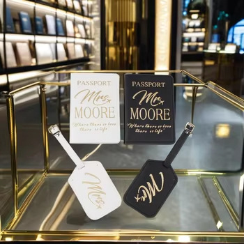 Cross-border Original PU Embossed Bronzing Logo Letter Passport Cover Certificate Card Set Couple suit Wedding Gift