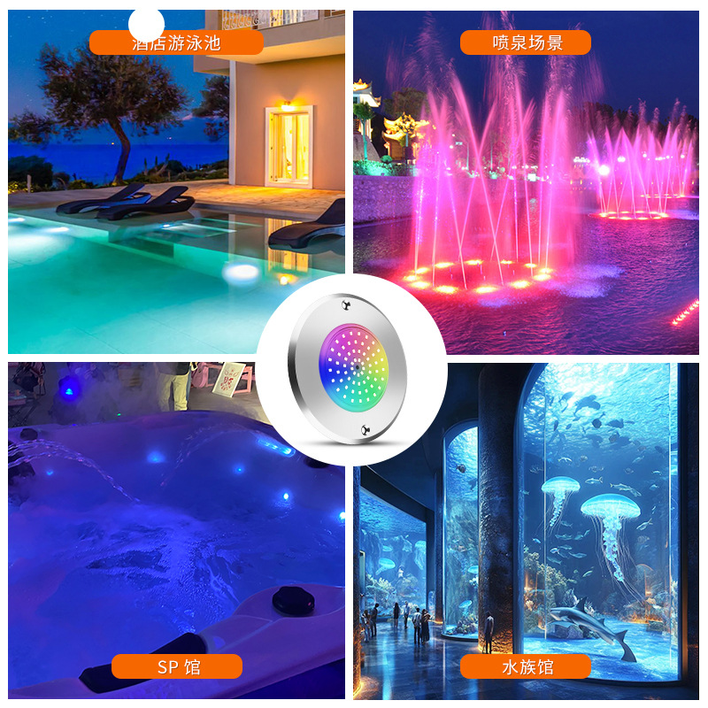 Cross-Border Par56 Seven-Color Ultra-Thin Led Fountain Light Stainless Steel Underwater Light Swimming Pool Light Underwater Wall Light Dc12V