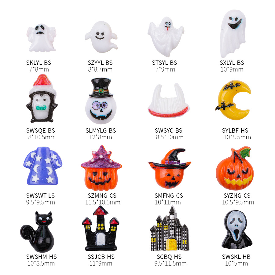 Cross-Border Popular Halloween Nail Art Accessories Mixed Resin Little Ghost Pumpkin Luminous Nail Decorations Wholesale