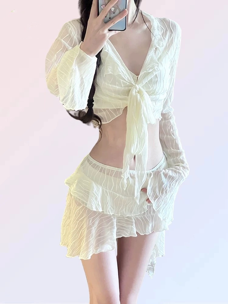 Cross-border Pure Desire Swimwear Women's Bikini 2024 New Slimming Conservative Belly Covering Four-piece Sexy Split Bikini
