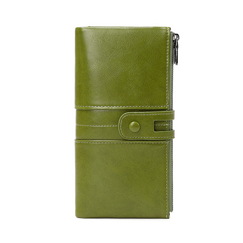 Cross-border RFID anti-theft brush women's wallet oil wax leather double zipper long wallet European and American new retro clutch