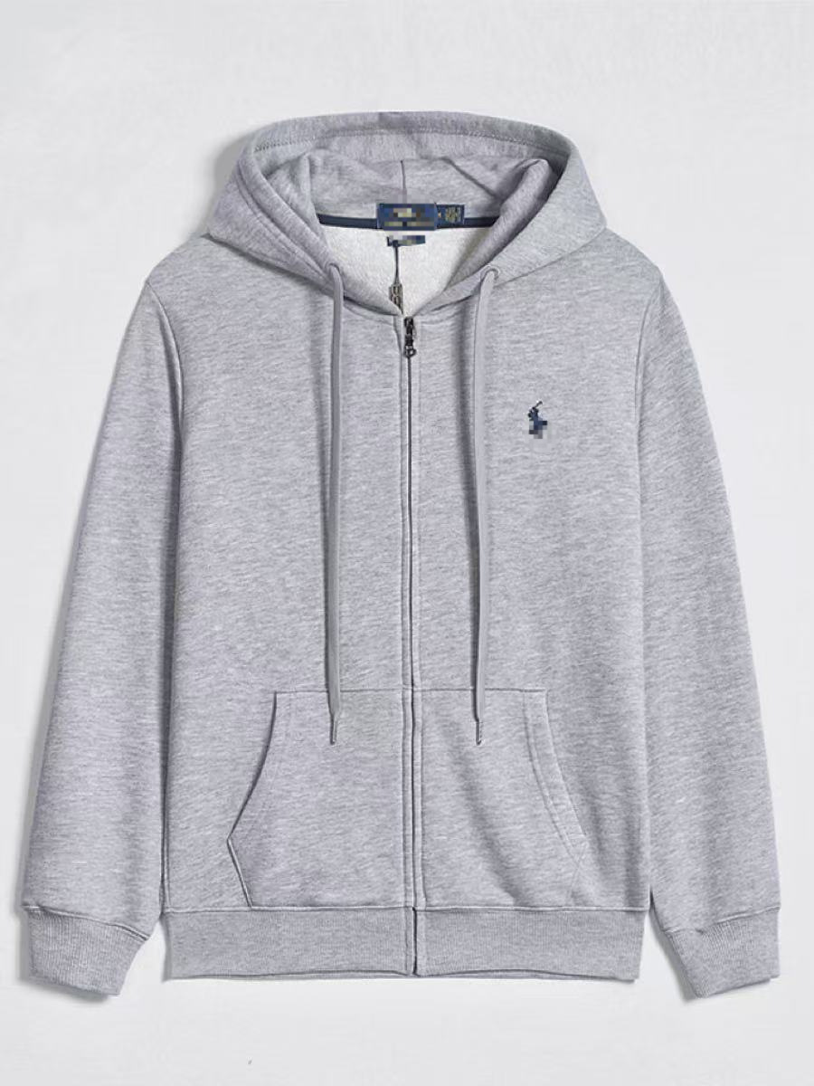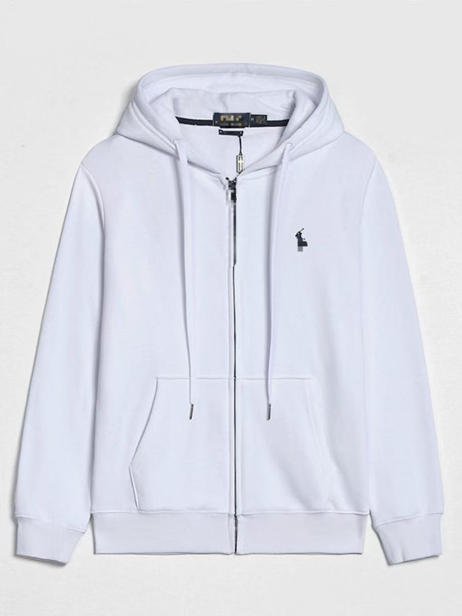 Cross-Border Rl Spring & Fall Long-Sleeved Sweatshirt Men's Casual Pure Color Embroidered Pony Logo Zipper Cardigan Hooded Jacket