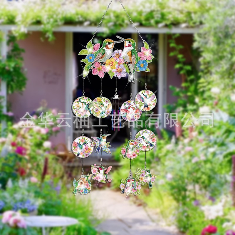 Cross-Border Shein Rotating DIY Diamond Painting Hanging Ornaments Source Factory Temu Three-Dimensional 5D Diamond Wind Chimes Custom Wholesale