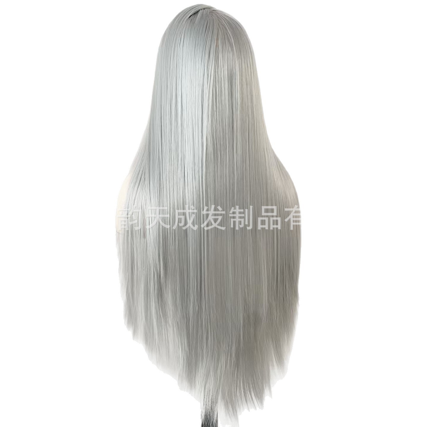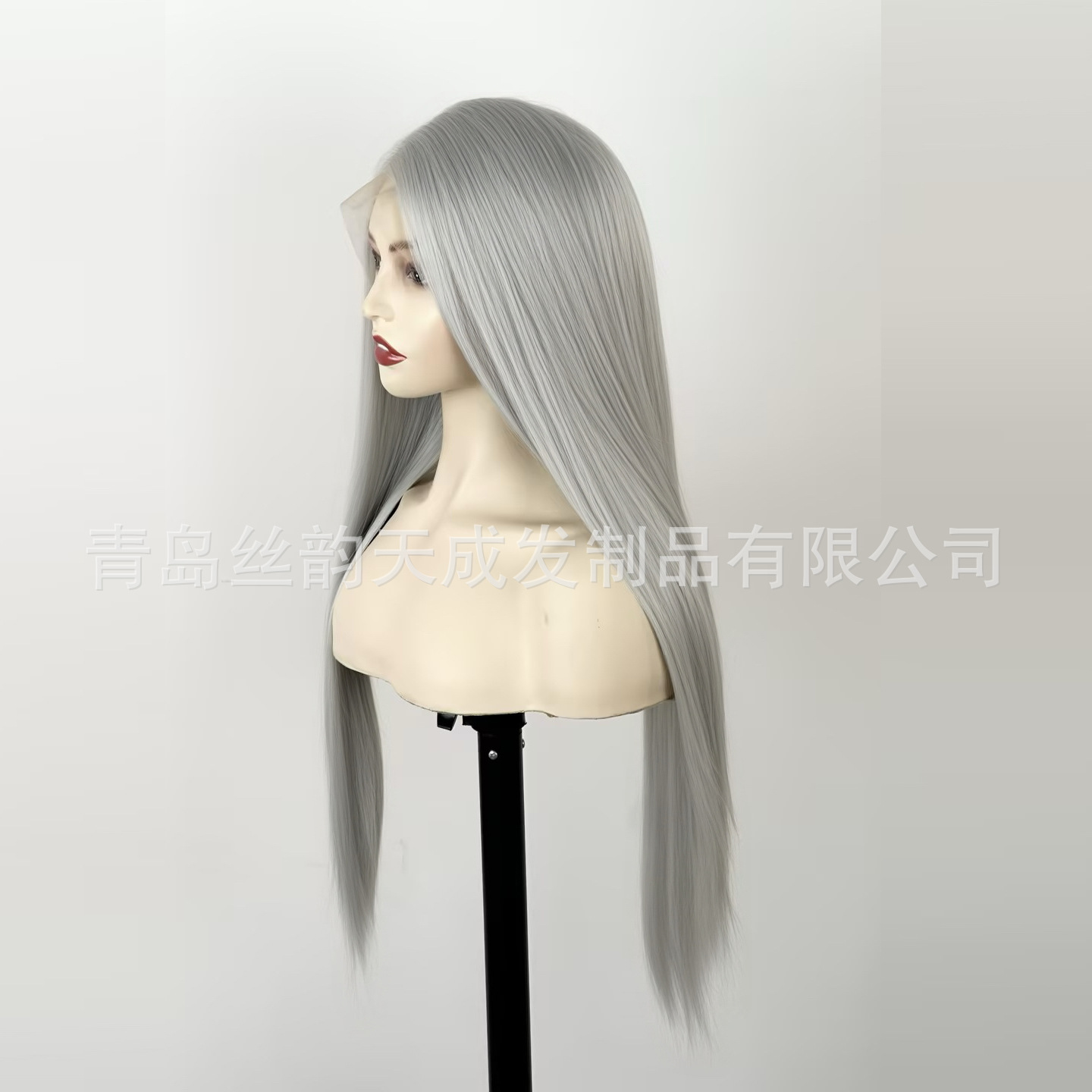 Cross-Border Silver-Gray Wig, Lace Front, Hand-Crocheted, 13*4, Middle Part, Straight, Full Wig, Cosplay Wigs, Foreign Trade