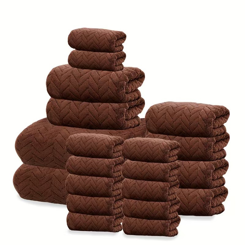 Cross-Border Vacuum-Packed Three-Piece Set of Bath Towels, Edged Coral Fleece Beach Towels, Super Absorbent Travel Essential for Home Use