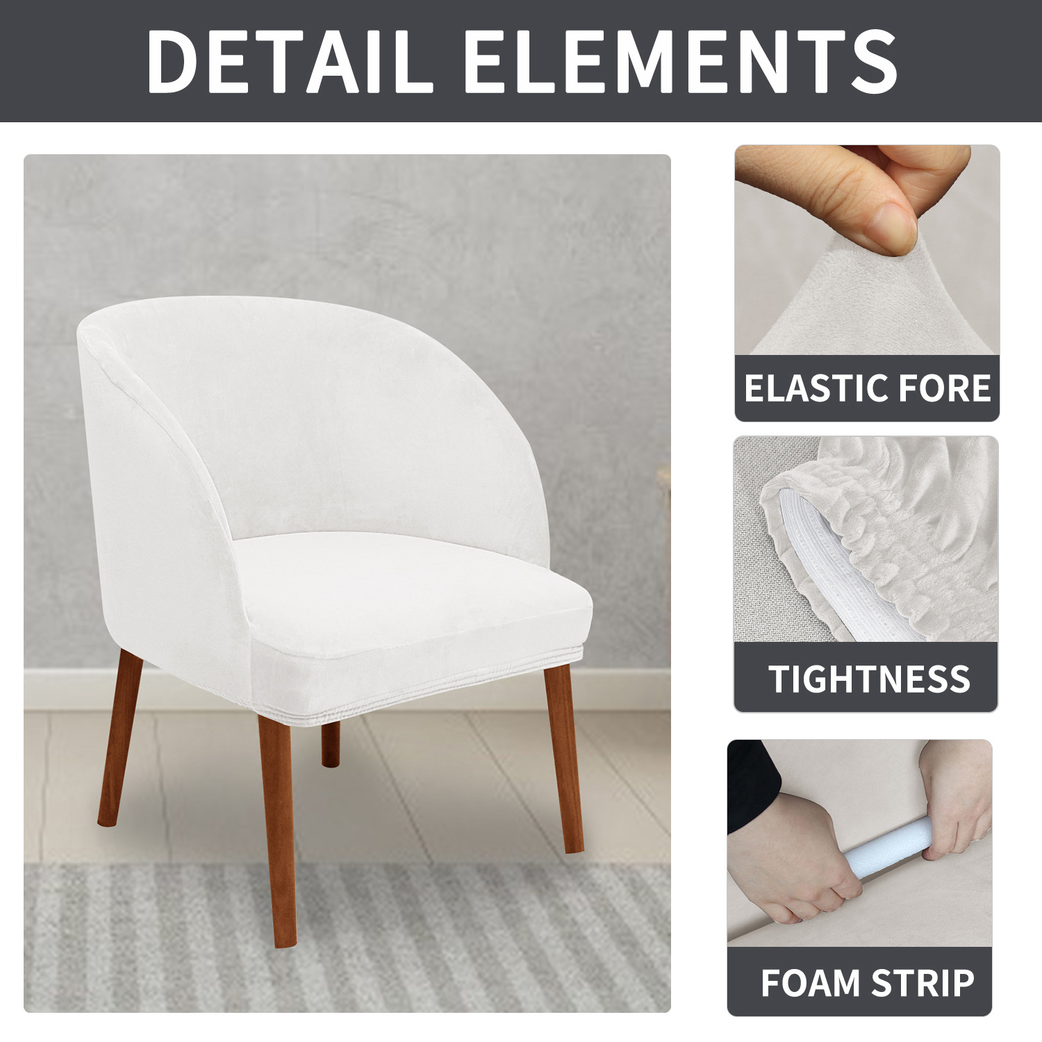 Cross-border Velvet Modern Semi-circular Small Wings Dining Chair Cover Chair Back Simple Elastic Arc Shaped Chair Cover