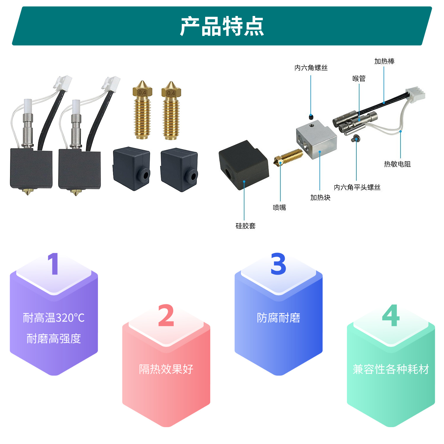 Cross-border vertical dimension cubic Kobra S1 extrusion head hot end kit brass nozzle print head 3D printer accessories