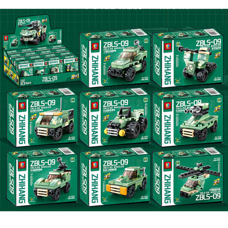 Cross-Border Wheeled Infantry Military Armored Tank Combat Vehicle Assembled Small Particle Chinese Building Blocks Educational Toys for Boys and Girls