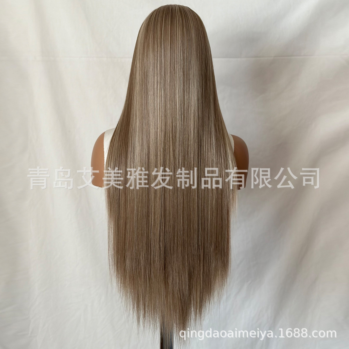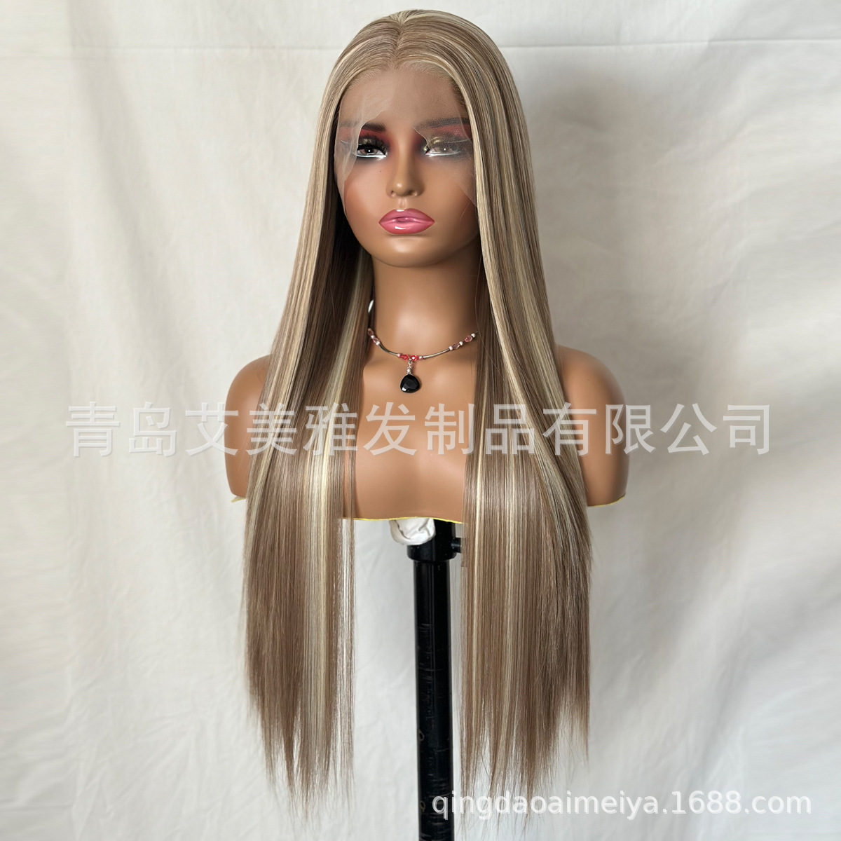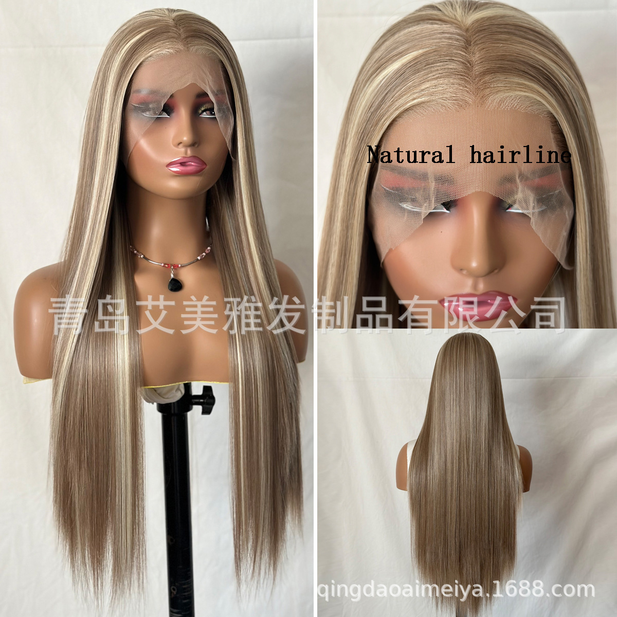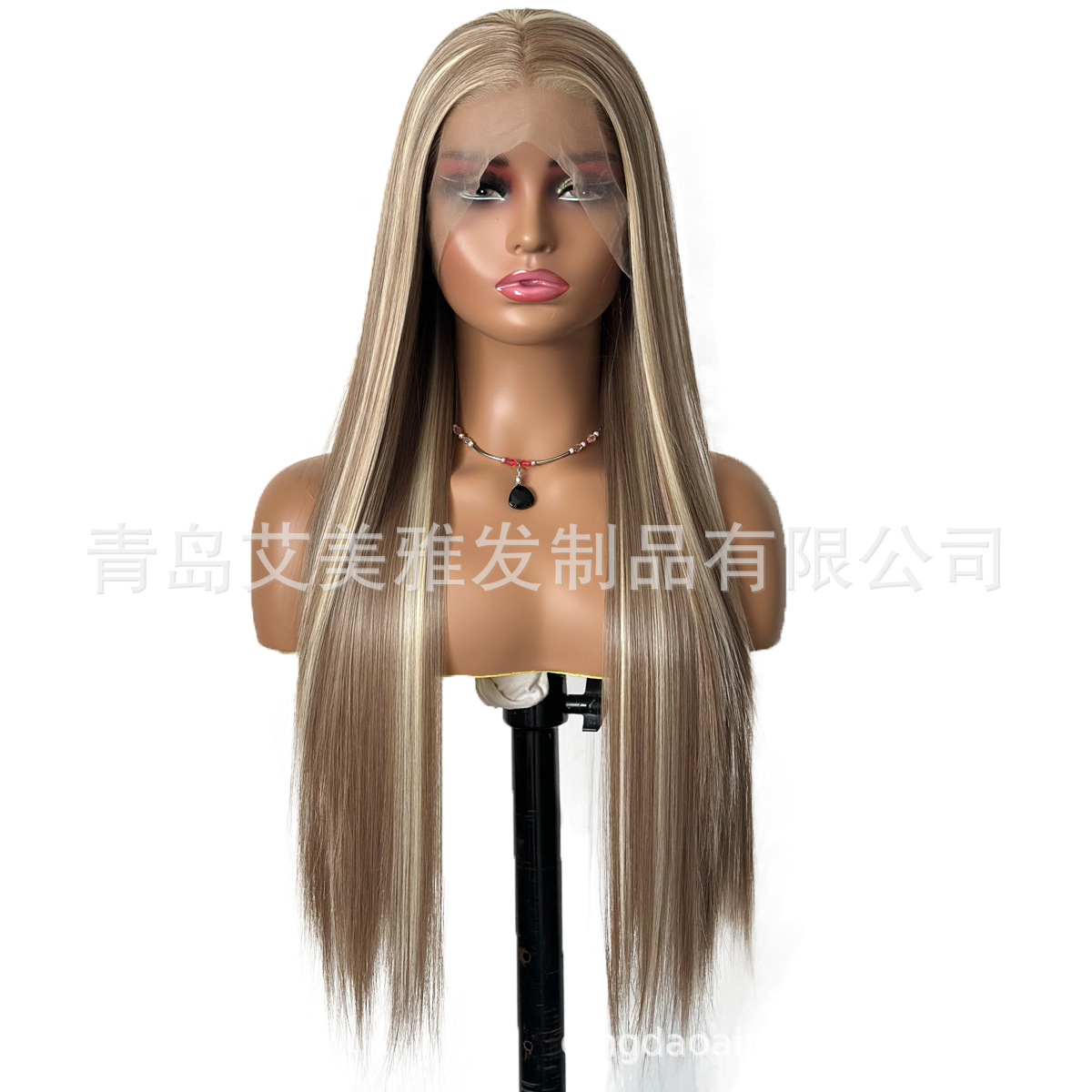 Cross Border Wig Women's Front Lace Brown Mixed Blonde Long Straight Hair Synthetic Fiber COS Headgear Factory in stock Wholesale