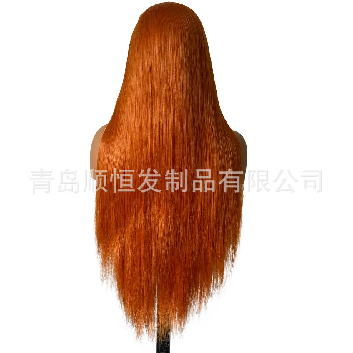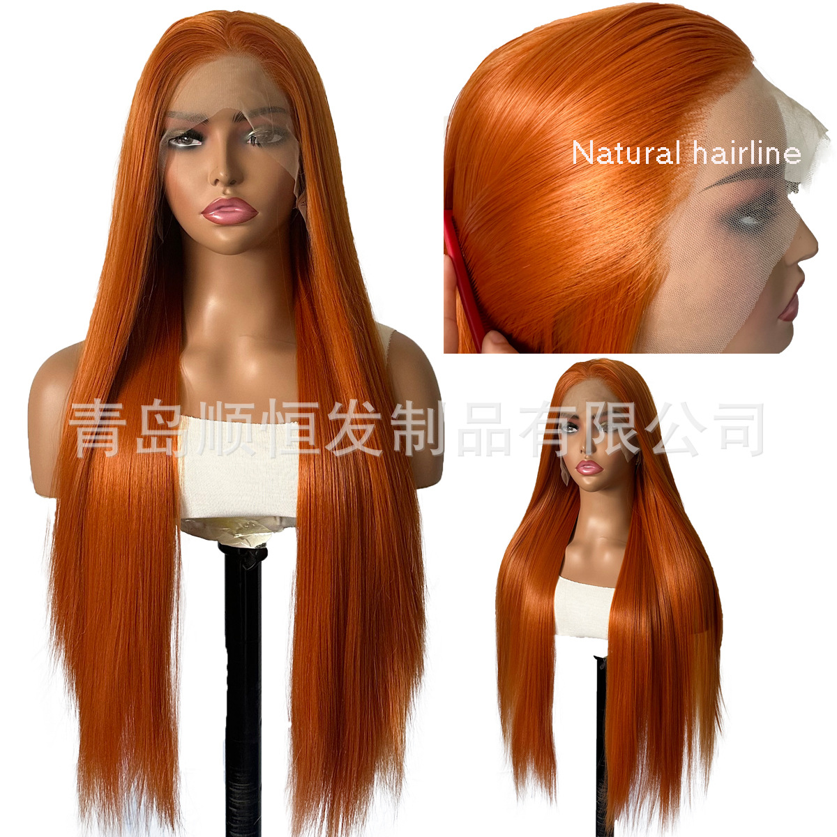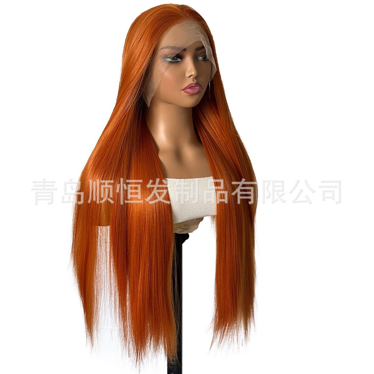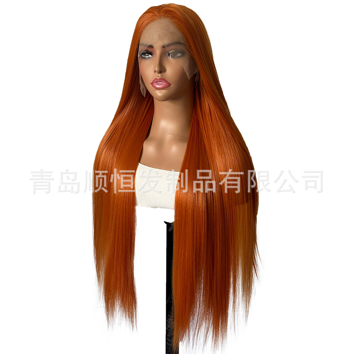 Cross Border Wig Women's Front Lace Ginger Orange Long Straight Hair Synthetic Fiber High Temperature Silk COS Full Head Cover Factory in stock