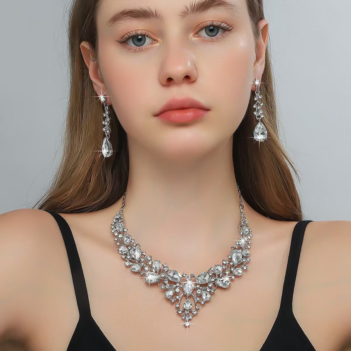 Cross-Border Women's Popular Fashion High-End Court-Style Trendy Light Luxury Necklace and Earrings Banquet Bride Foreign Trade Jewelry Set