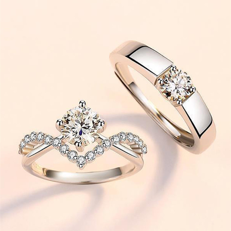 Crowning for Love Couple's Ring Four Claw 1 karat Zircon Diamond Ring Pair for Men and Women Wedding Ring Crown Opening Pair Ring