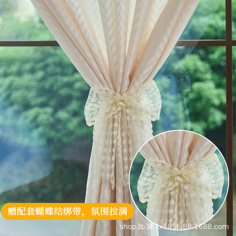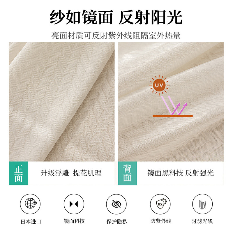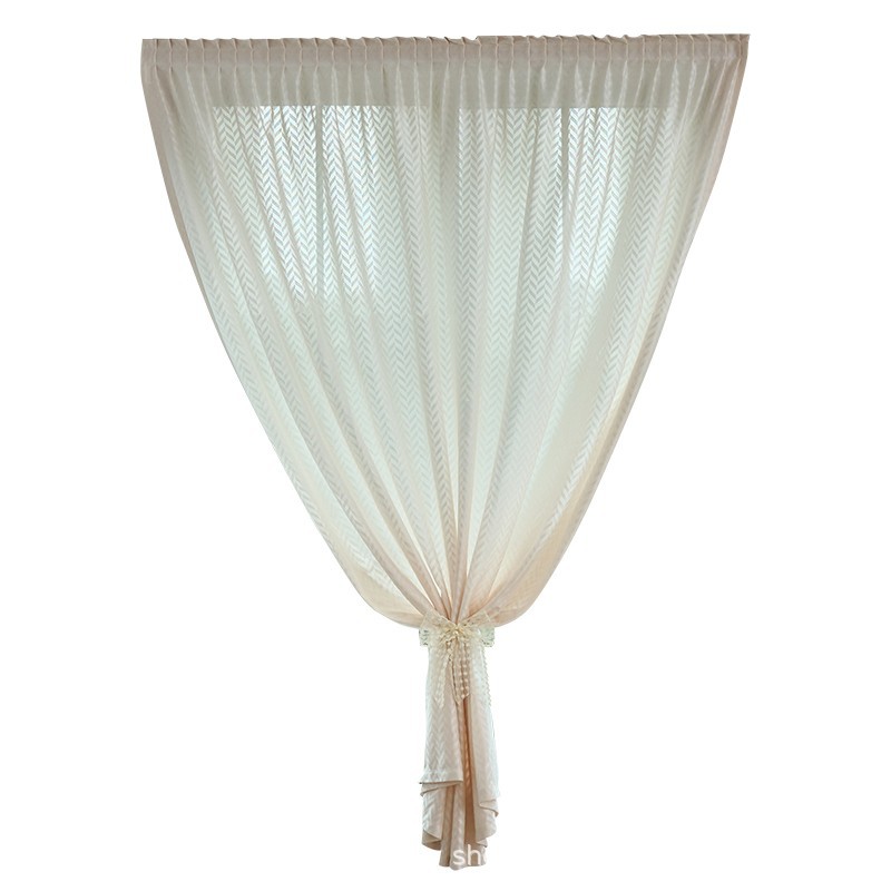 Curtain Sheer Curtain Light-Transmitting and Opaque Velcro No-Drill Installation Bay Window Balcony Sun Protection Heat Insulation Milk Tea Color Window Screen