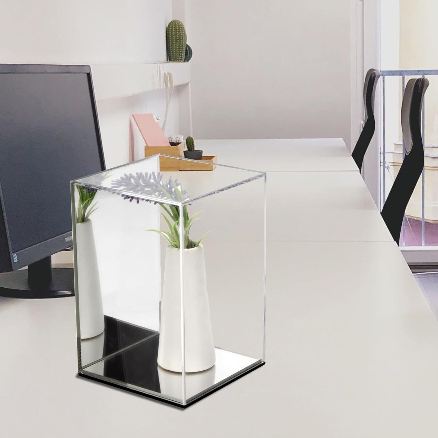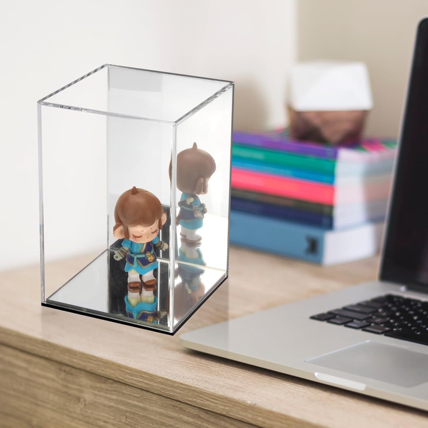 Customized Acrylic Transparent Cube Dust-Proof Display Box with Back and Base with Mirror for Doll Models
