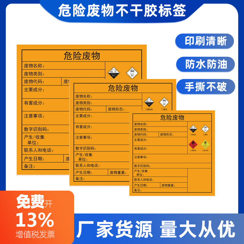Customized New Version of National Standard Hazardous Waste Labels, Hazardous Waste Chemical Waste Warning Three-Proof Thermal-Sensitive Synthetic Paper Self-Adhesive Labels