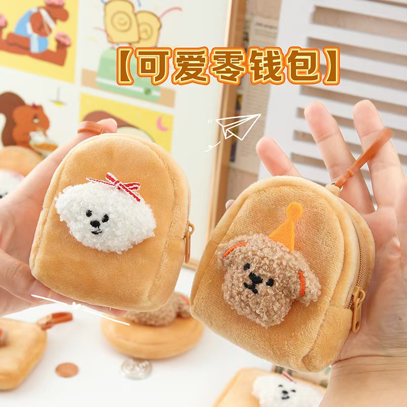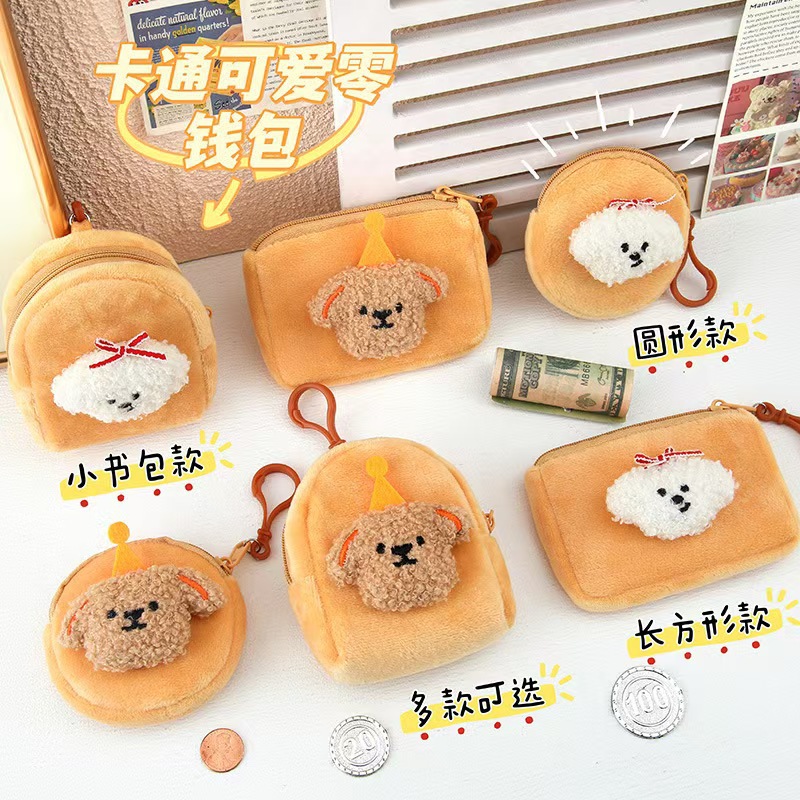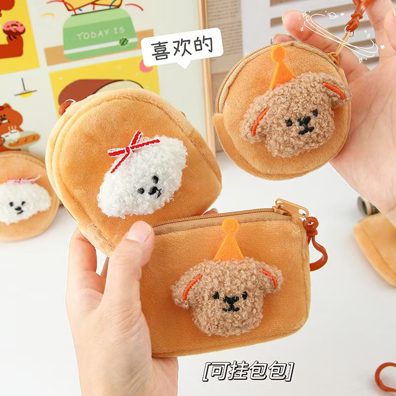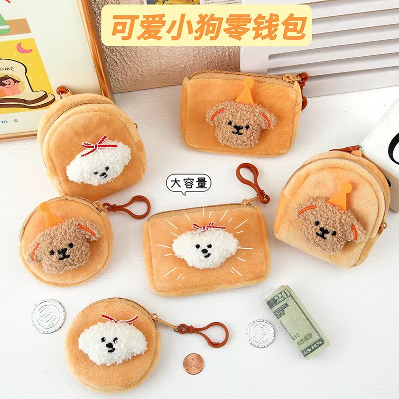 Cute Plush Puppy Coin Purse Student Mini Wallet Key Sundry Storage Bag Girl Heart Headset Bag Wholesale