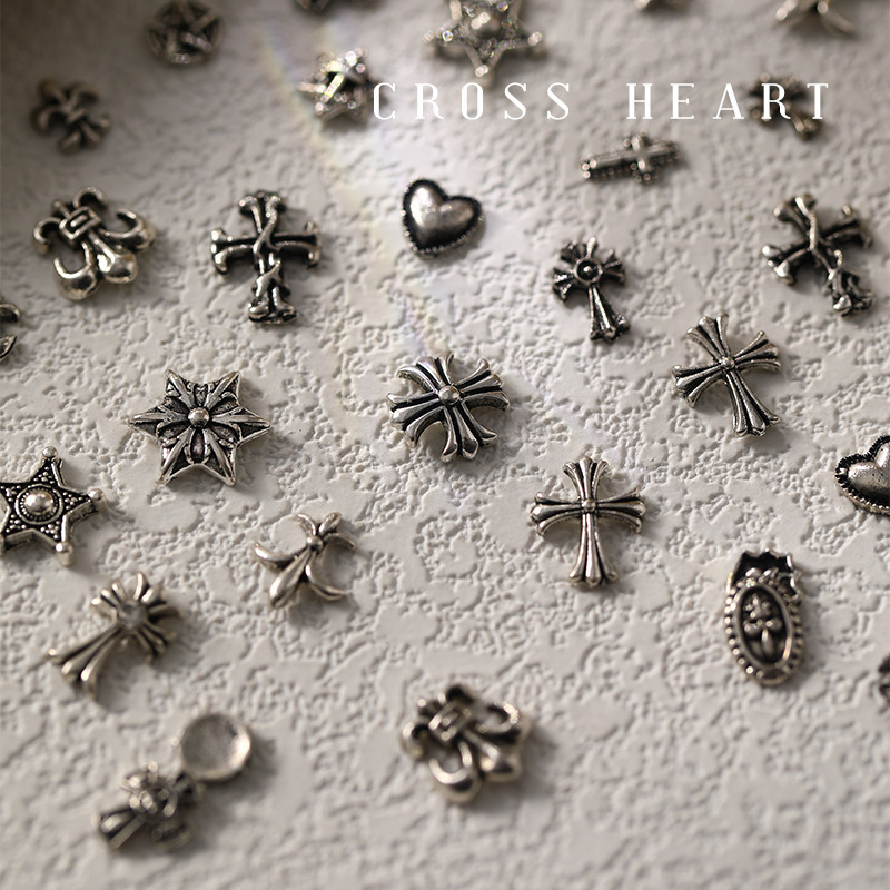 Internet Celebrity Cross Nail Art Accessories Wholesale Silver Vintage Punk Style Cross Shaped Nail Art Alloy Accessories