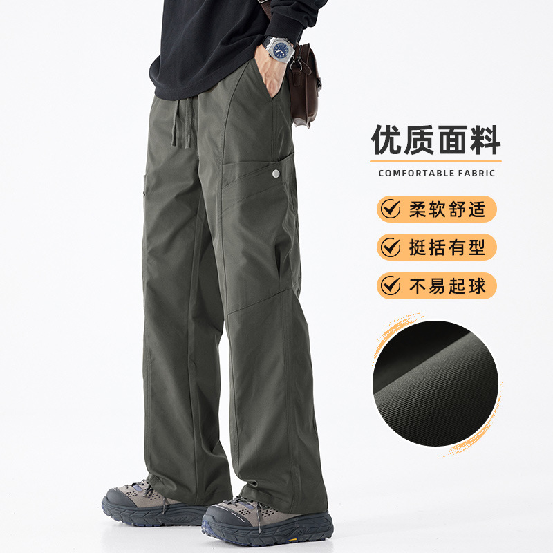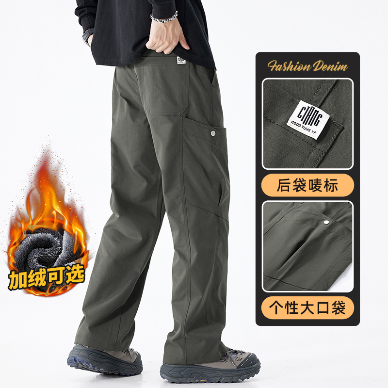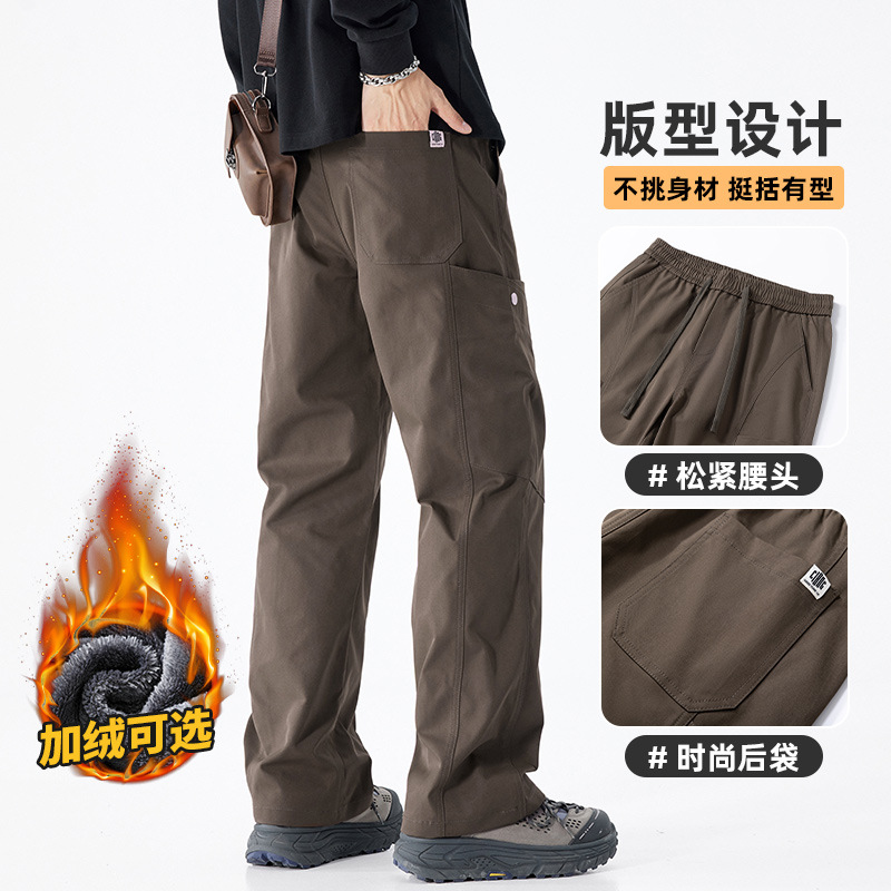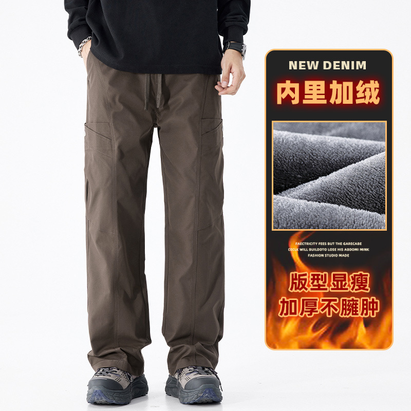 Danbaoni | fleece-lined Fall/Winter Paratroopers Workwear Mopping Pants Joker Warm Straight Climbing Pants Casual Workwear Pants Men