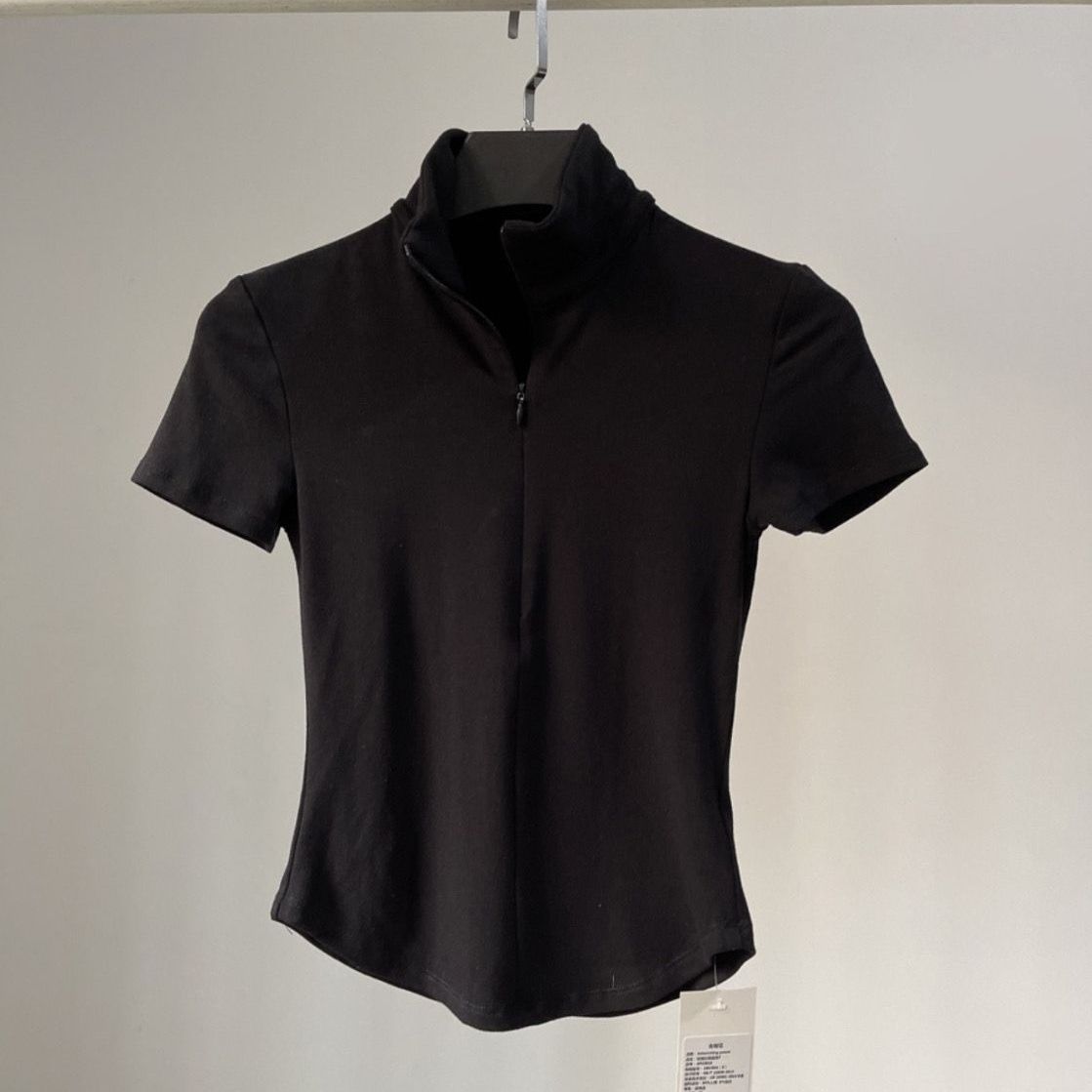 Dance Clothing Fishbone Yoga Top, Feminine, Chic, Slimming, Slightly Fat, Flesh-Covering Zipper Stand-Up Collar Short-Sleeved Shirt