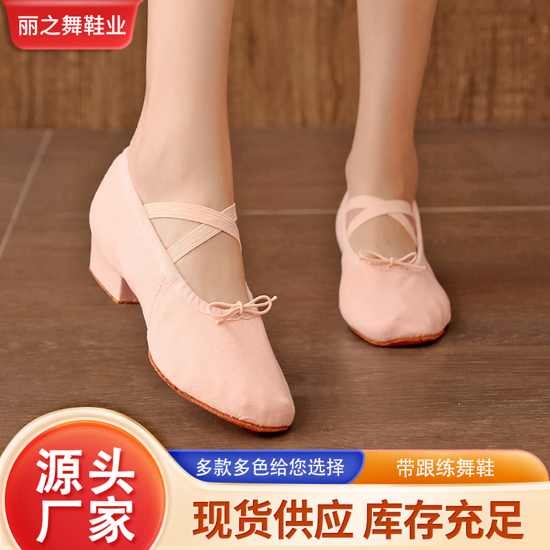Dance Shoes with Heels, Ballet Shoes, Lace-Up Practice Shoes, Soft-Soled Shoes, High-Heeled Teacher Shoes, Indoor Modern Dance Breathable Shoes