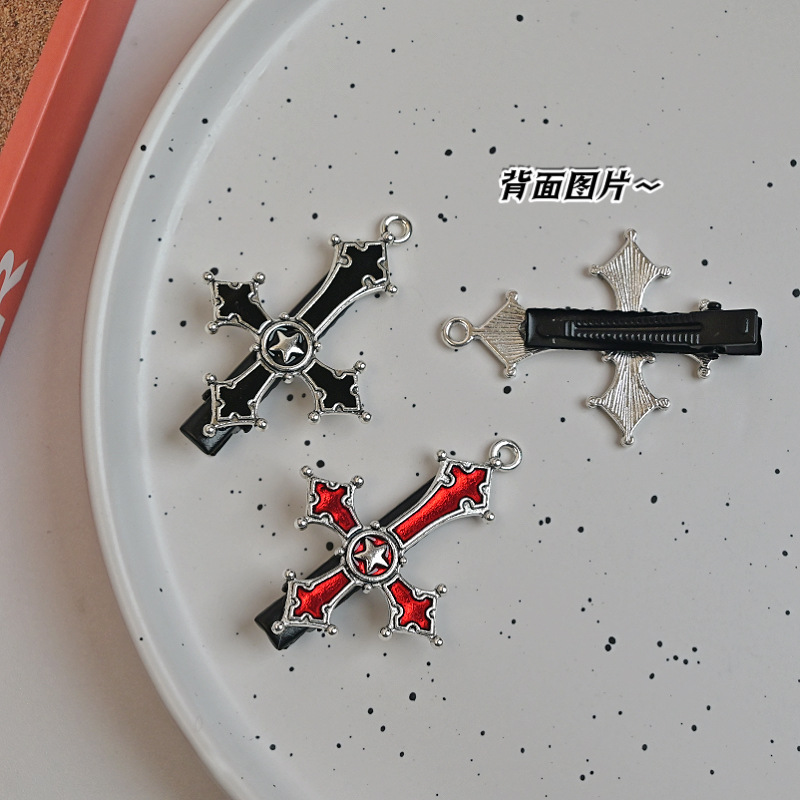 Dark punk Gothic cross hairpin y2g sub-culture niche design sweet cool style personalized side clip bangs clip