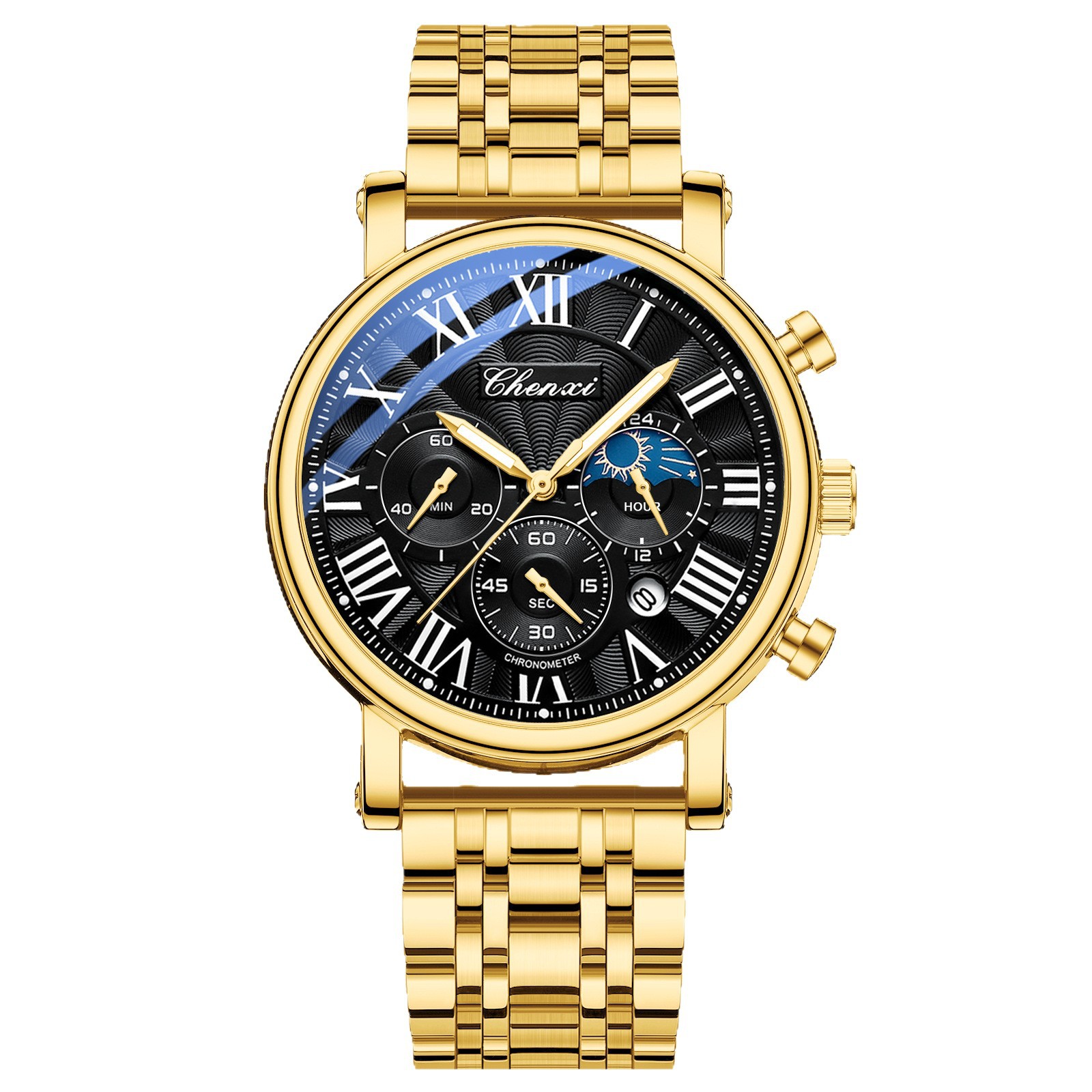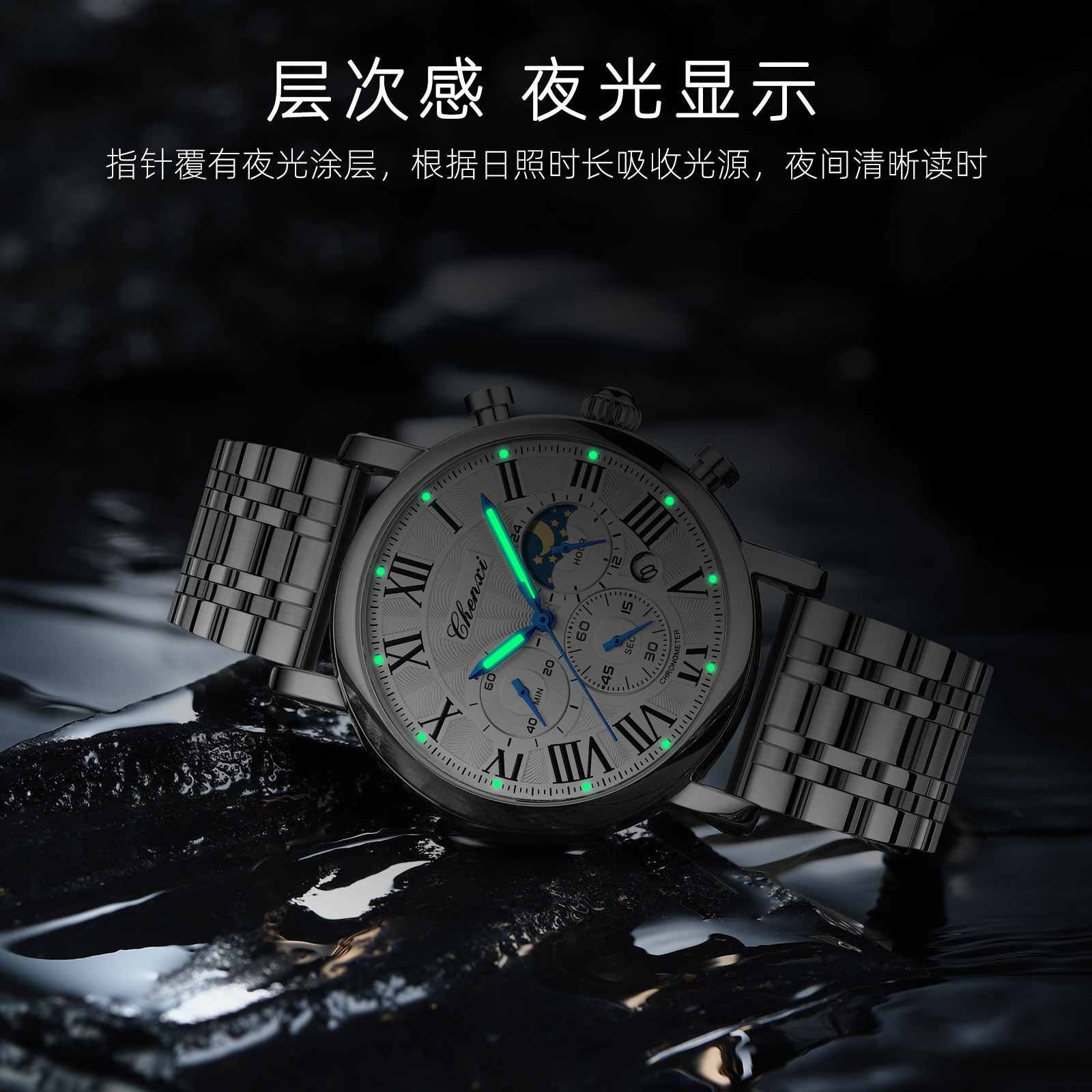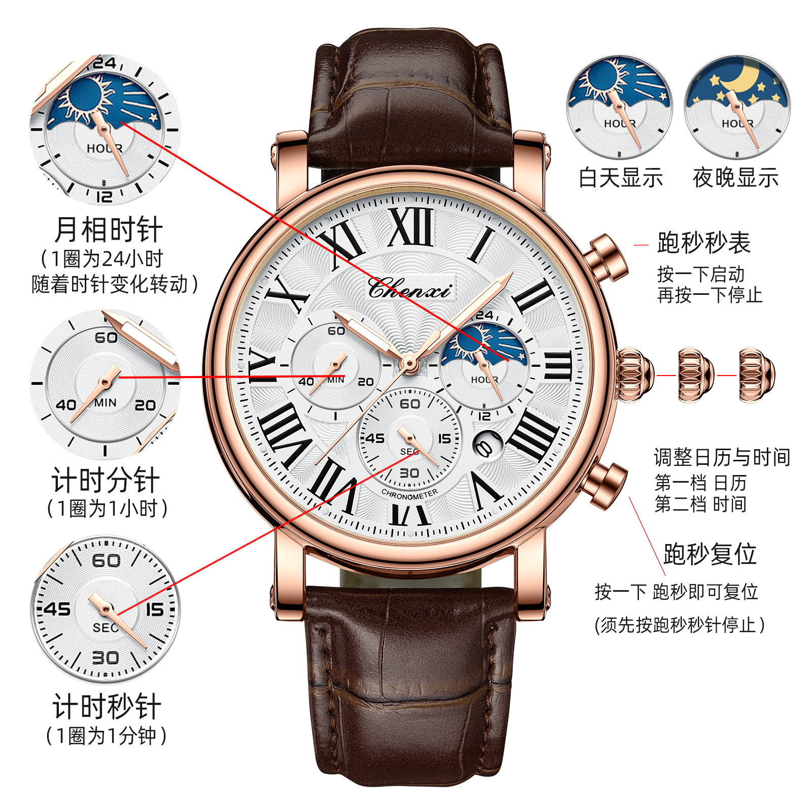 Dawn Multifunctional Men's Business Watch Moon Calendar Waterproof Rome Factory Cross-border Foreign Trade Live Watch Men