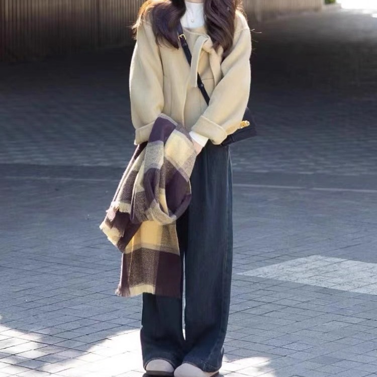 Deep autumn women's clothing 2024 with a set of tea series wear high-grade French Platycodon grandiflorum coat top two-piece suit