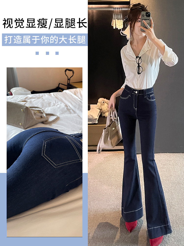 Denim Blue Flared Fleece-Lined Jeans for Women, Autumn and Winter 2025 New High-Waisted Slim-Fit Stretchy Petite Bell-Bottom Pants