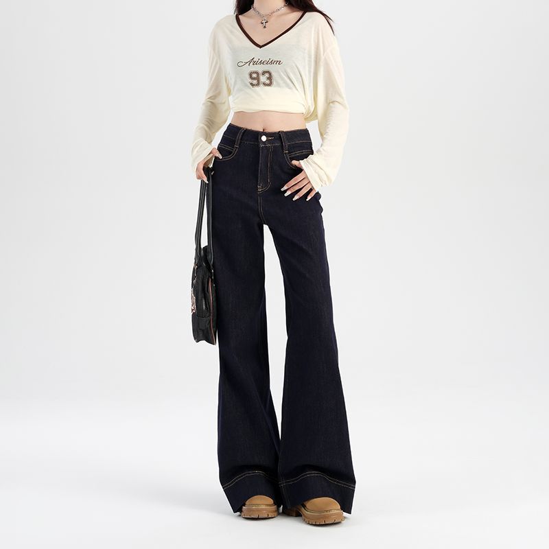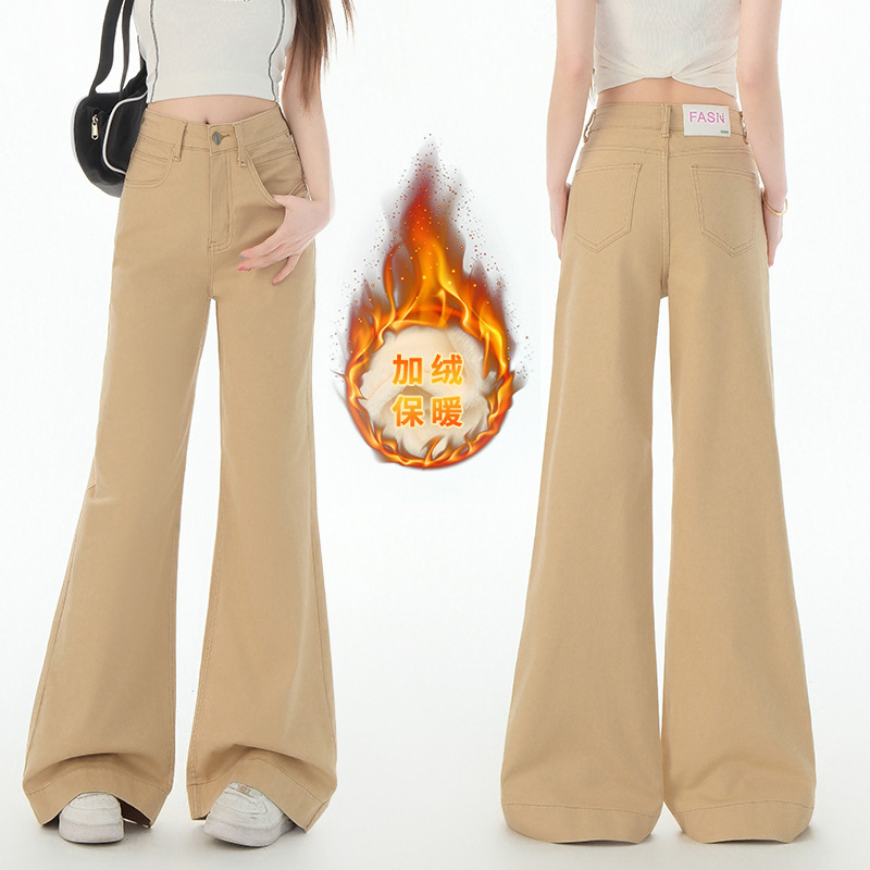 Denim Blue Jeans for Women 2025 Autumn and Winter New Style Fleece-Lined Thickened Loose Wide-Leg Straight Pants for Petite Figures