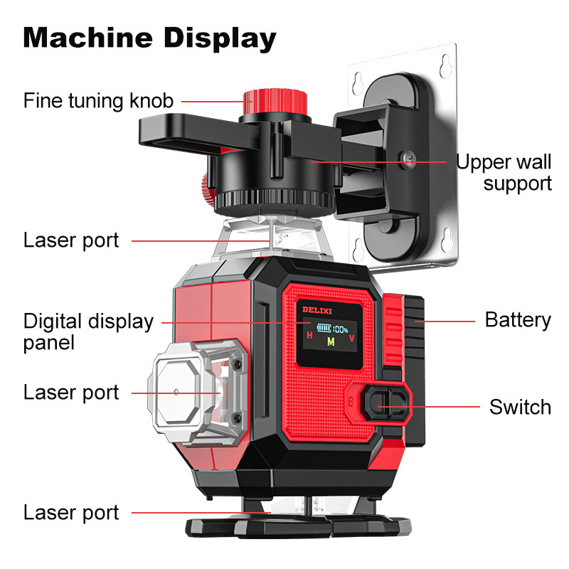 Digital display screen infrared flat water meter green light 12 lines 16 lines high precision automatic leveling ground meter adjustable thickness