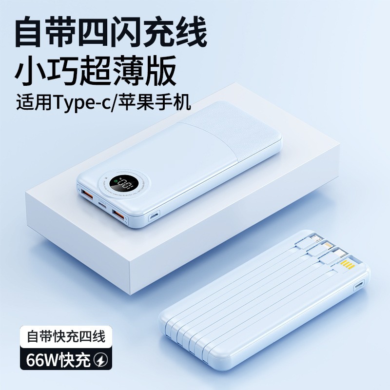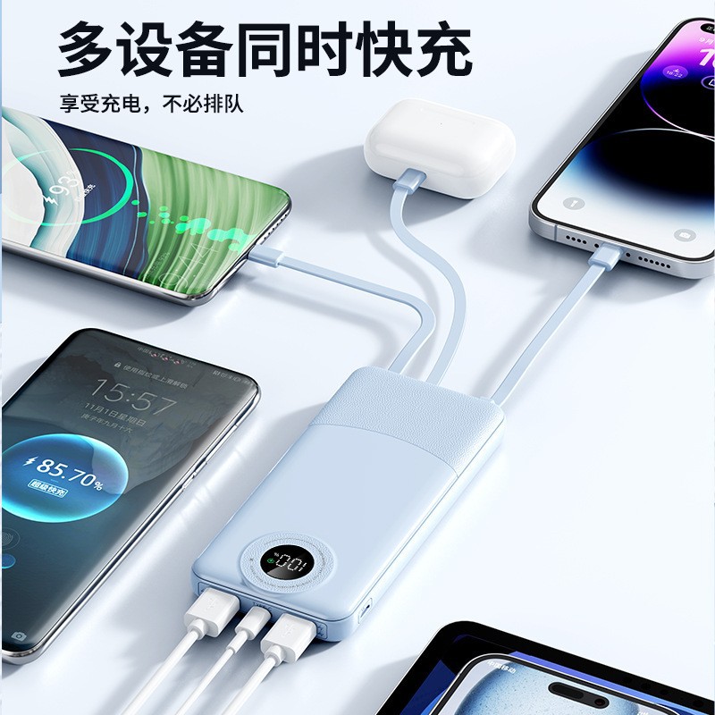 Wholesale Super Fast Charging Power Bank with Built-In Cable 20000 Mah Ultra-Thin Mobile Power Supply Gift with Customizable Logo