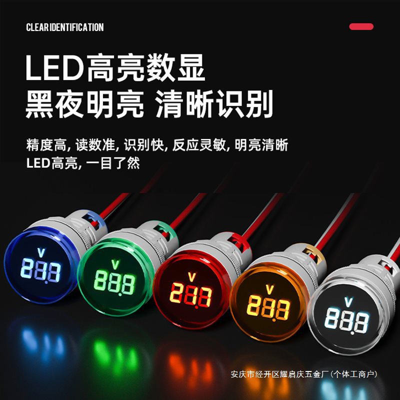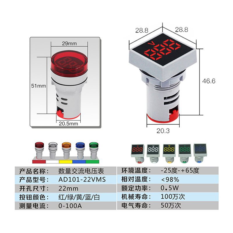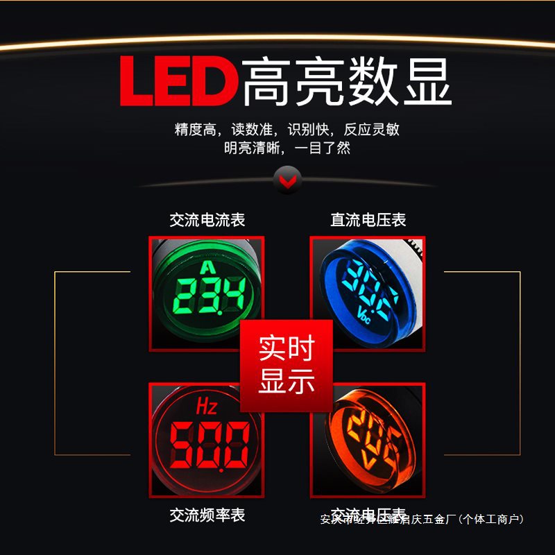 Digital display voltage and current indicator light signal digital display table LED mini small dual display 220V square round