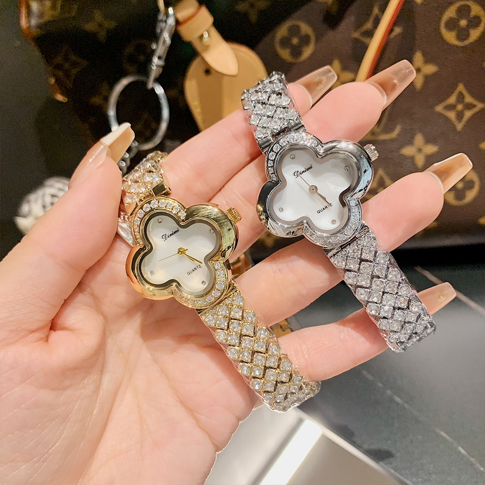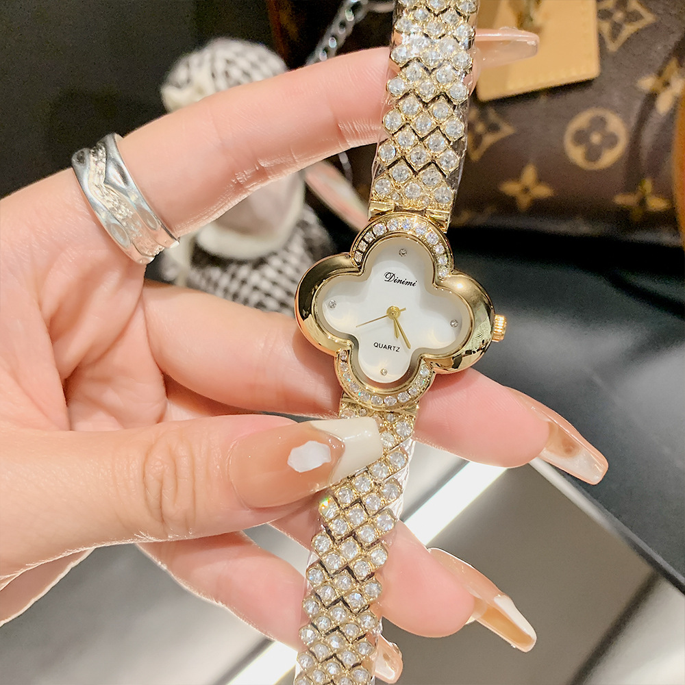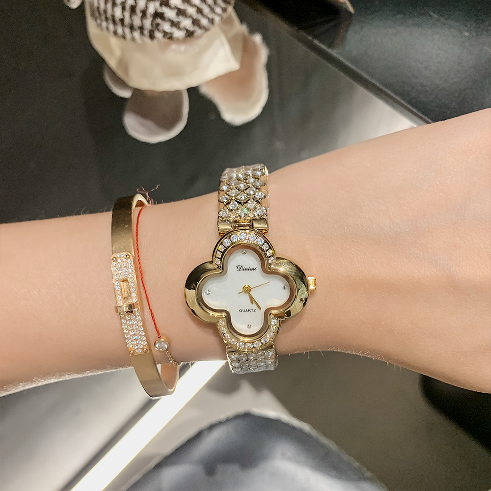 Dimini Shine Rhinestone Four-leaf Clover Women's Fashion Watch Temperament Small Dial Romantic Elegant Quartz Watch Women