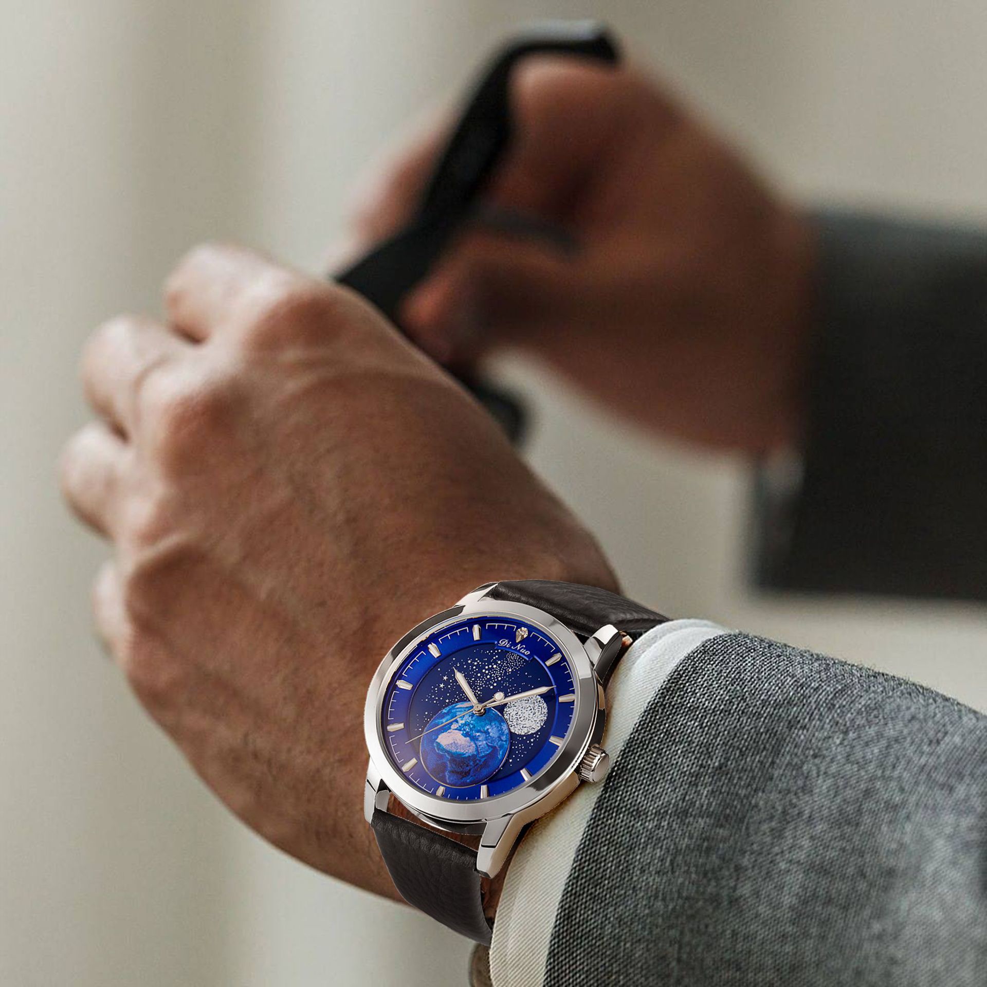 DINUO_8080 Men's Watch Visible Luminous Random Pattern Imported Quartz Romantic Galaxy Sounded
