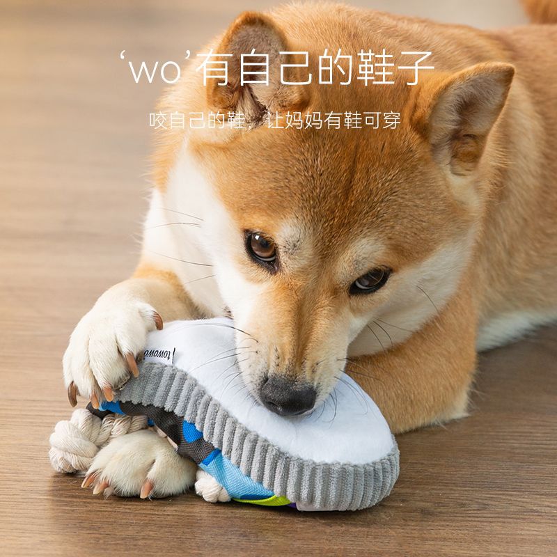 Cute Dog Slippers Toy, Sound Self-Pleasure and Boredom Relief Artifact, Teeth Grinding and Bite-Resistant Teddy Golden Retriever Pet Consume Physical Energy