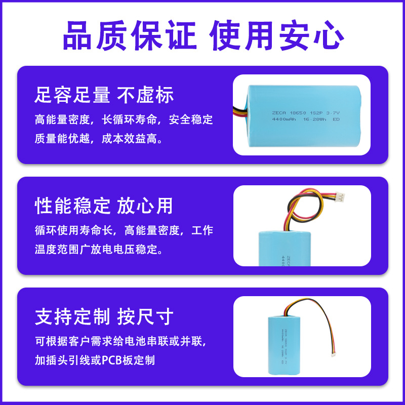 Dongguan Lithium Battery Manufacturer 18650 Lithium Battery Pack 3.7V Parallel Connection 4400Mah Long-Lasting Ntc Temperature-Controlled Battery