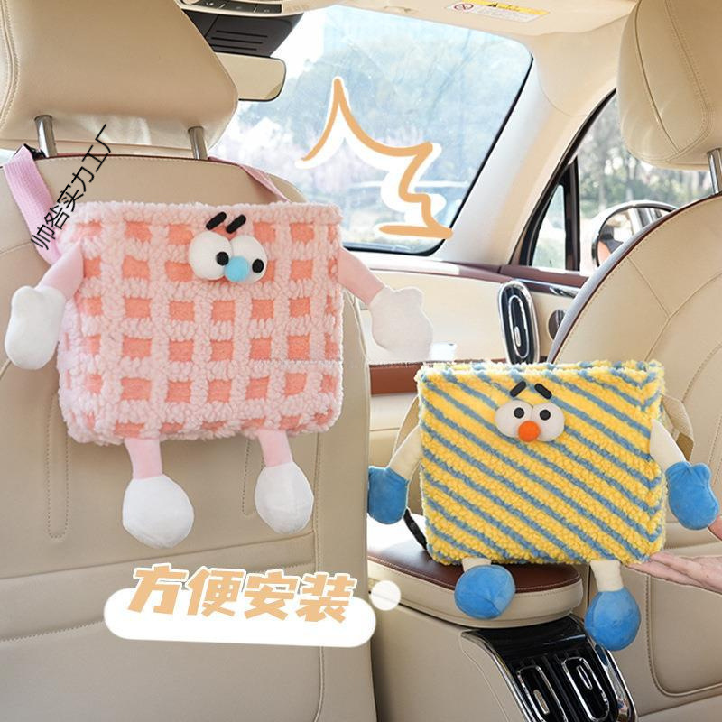 多巴胺汽车收纳桶 卡通小怪兽车载垃圾桶 车用椅背挂式收纳储物箱