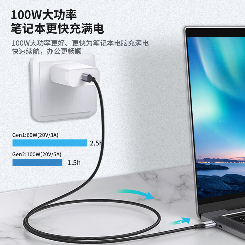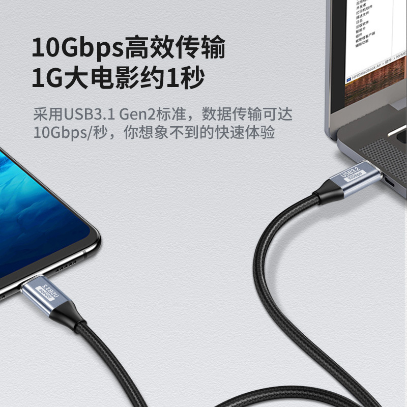 Double head Type-C data line USB3.2Gen2 with E-mark chip 5A braided PD fast charging 100W charging line
