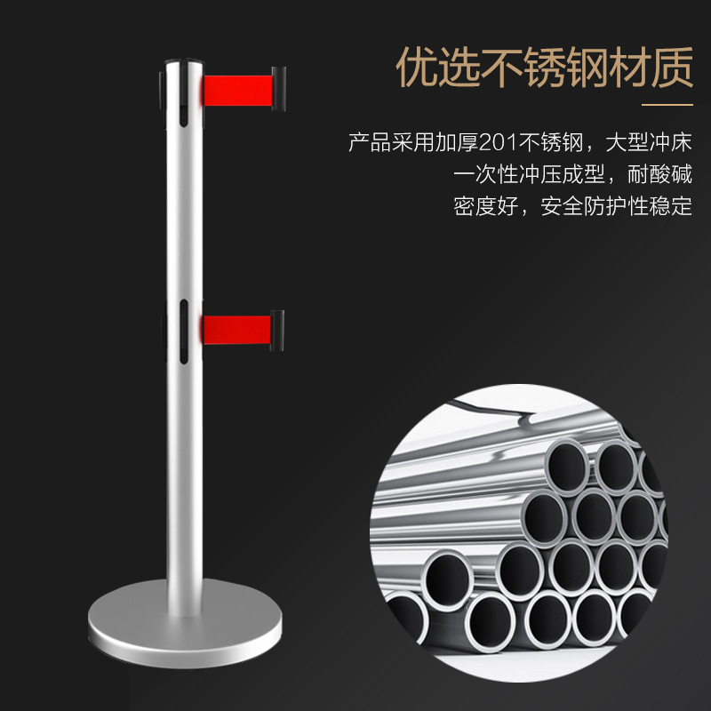 Double-layer isolation belt telescopic belt queuing guardrail stainless steel one-meter line barricade railing warning line safety warning belt