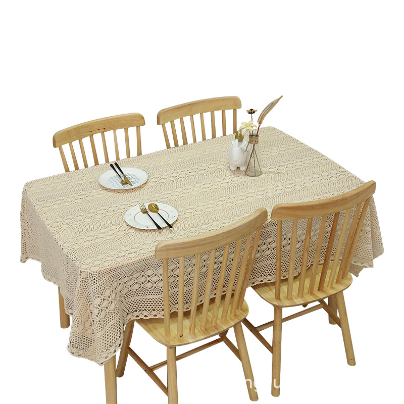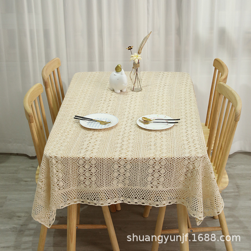 Double-Tone Cotton Crochet Tablecloth Rectangular Lace Tablecloth Lace Square Coffee Table Cloth Table Runner Modern Minimalist Style