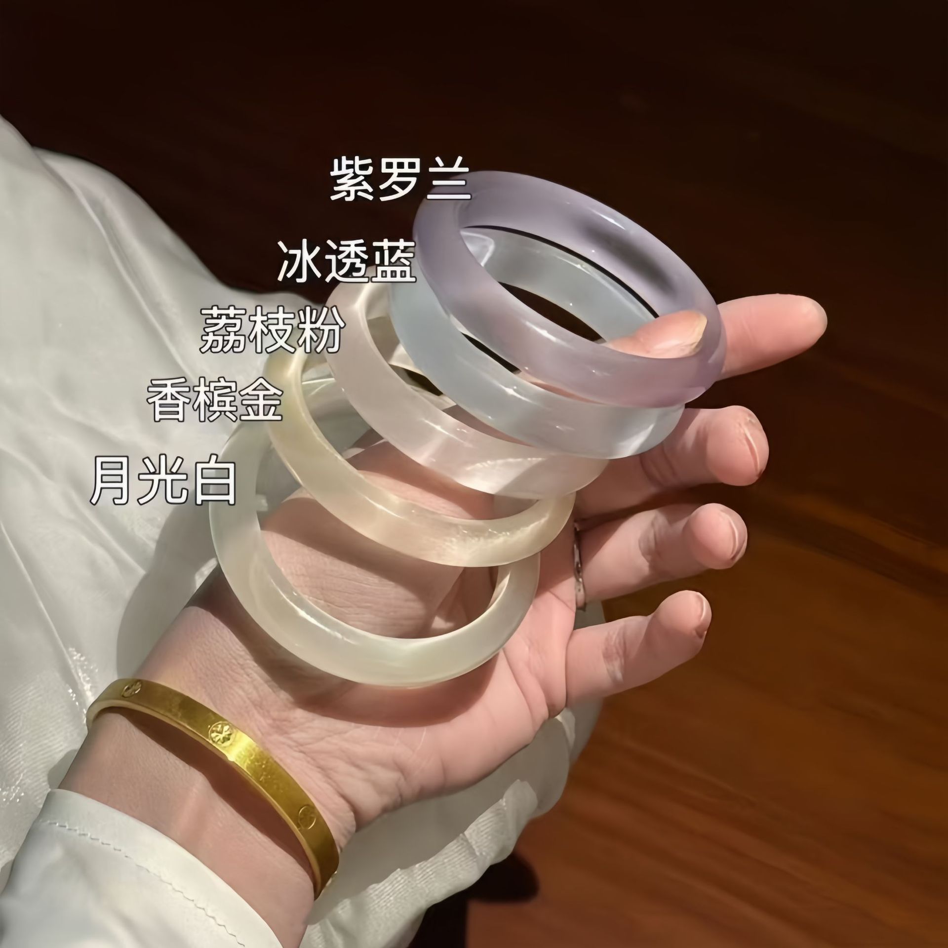 Douyin Live Broadcast High-End Cat's Eye Stone Bracelet White Moonlight Ice Blue Champagne Lotus Root Powder Bracelet Glass Bracelet Jewelry