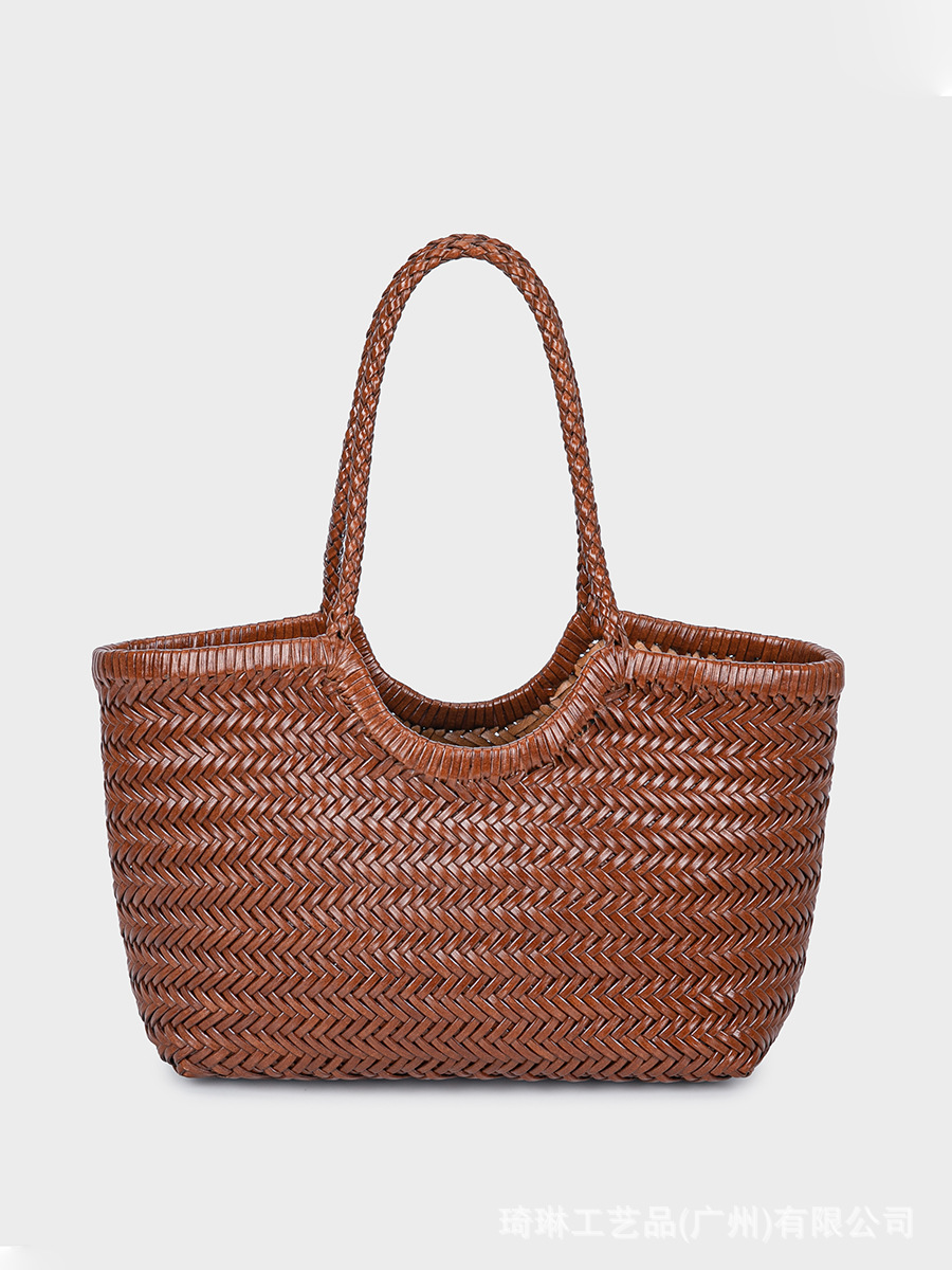 Dragon Same Style French Style Woven Vegetable Basket Bag Women's Genuine Leather Shoulder Bag Vintage Handmade Bag Ins Style